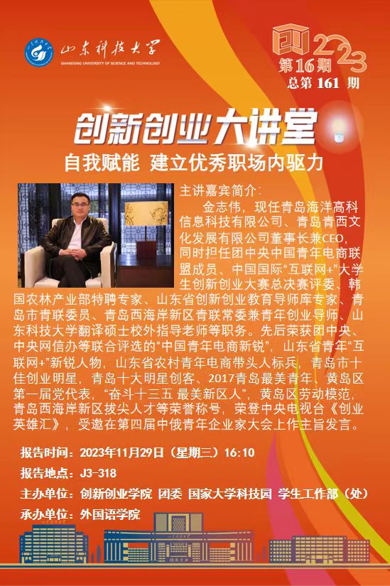 创新创业大讲堂第16期:自我赋能 建立优秀职场内驱力