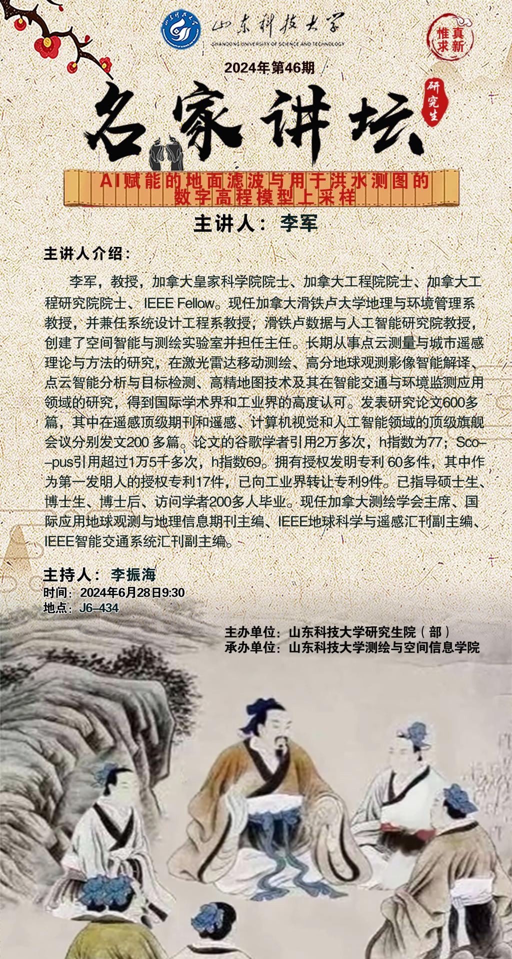 “名家讲坛”2024年第46期:AI 赋能的地面滤波与用于洪水测图的数字高程模型上采样(总940期)