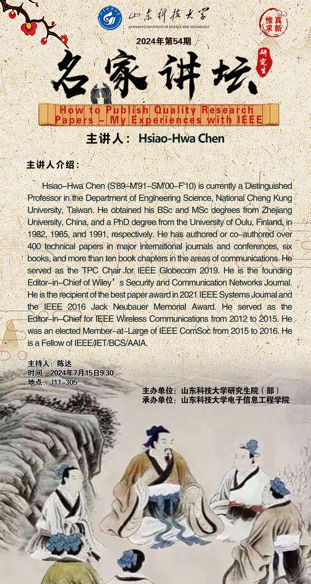 “名家讲坛”2024年第54期:How to Publish Quality Research Papers - My Experiences with IEEE (总948期)
