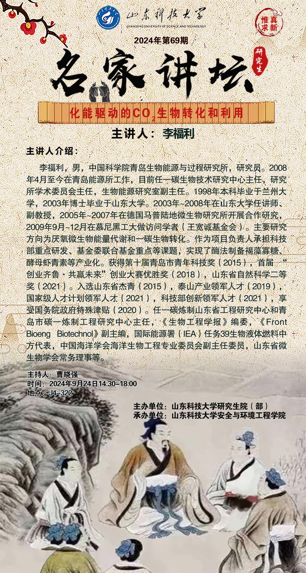 “名家讲坛”2024年第69期:化能驱动的CO2生物转化和利用(总963期)