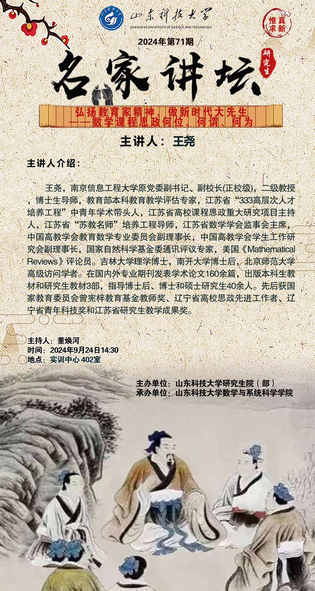 “名家讲坛”2024年第71期:弘扬教育家精神,做新时代大先生一数学课程思政何位、何谓、何为(总965期)