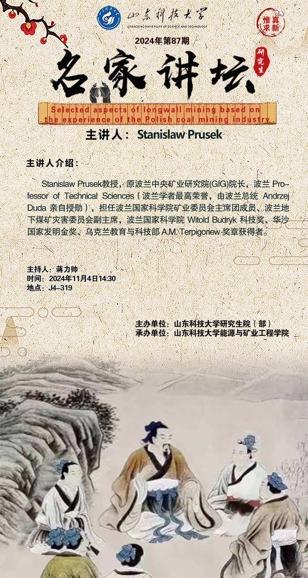 “名家讲坛”2024年第87期:Selected aspects of longwall mining based on the experience of the Polish coal mining industry(总981期)