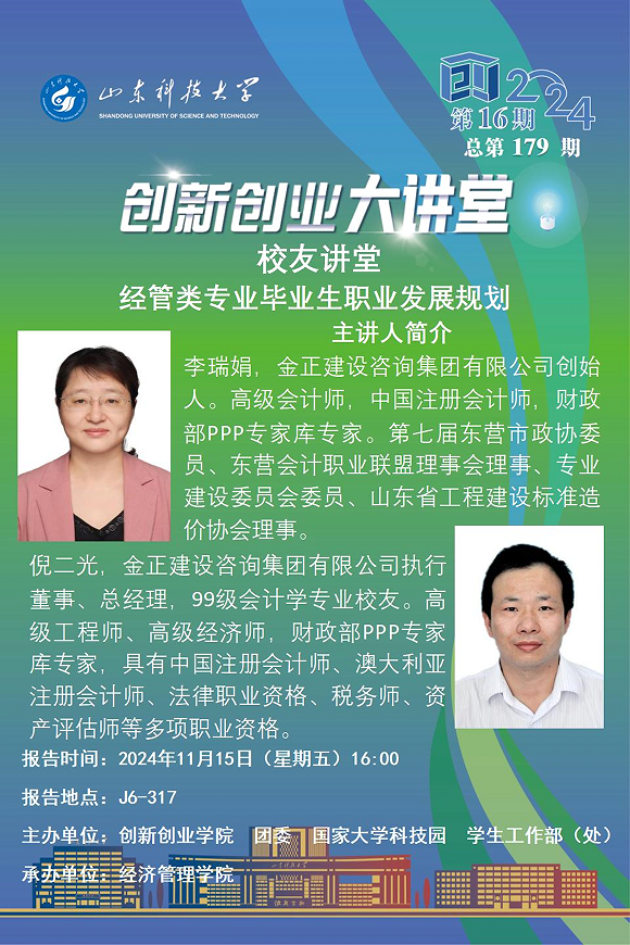 创新创业大讲堂2024年第16期:经管类专业毕业生职业发展规划