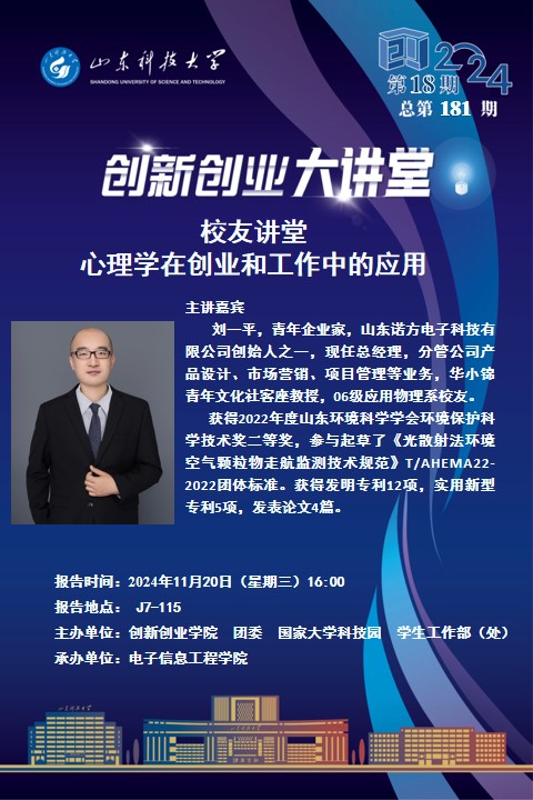 创新创业大讲堂2024年第18期:心理学在创业和工作中的应用